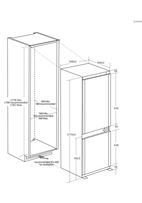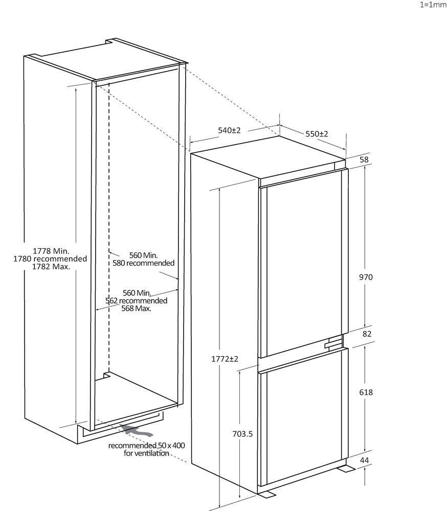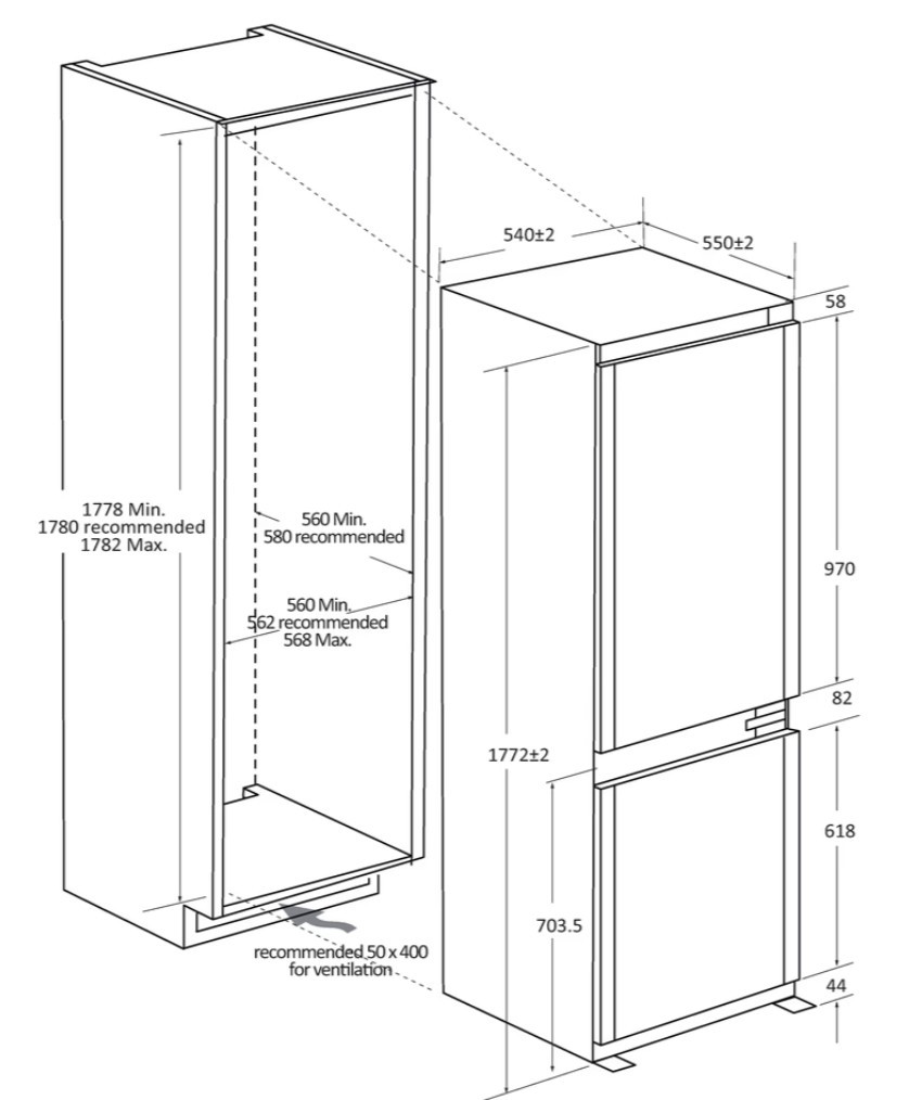 Εντοιχιζόμενος ψυγείοκαταψύκτης No Frost,