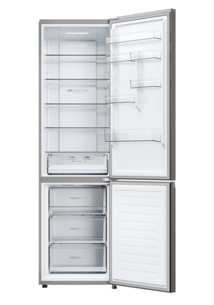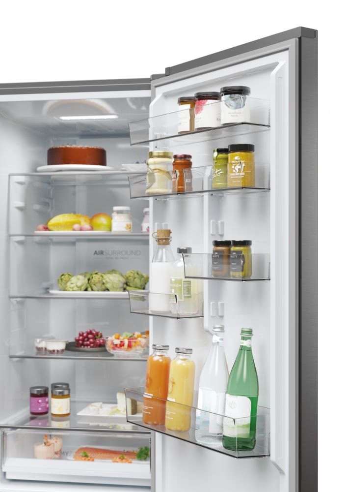 Με την τεχνολογία Fresher Tech της Haier, Air Surround, ο αέρας ρέει γύρω από το ψυγείο με πιο ήπιο και απαλό τρόπο από ειδικούς πλευρικούς αεραγωγούς κατανέμοντας ομοιογενώς τον κρύο αέρα που αγκαλιάζει τα τρόφιμα σε ολόκληρο τον θάλαμο του ψυγείου, χωρίς να βάλλει απευθείας τρόφιμα και να τα αφυδατώνει, όπως συμβαίνει στα συμβατικά ψυγεία. Γι' αυτό το Haier Air Surround διατηρεί τη γεύση και τη φρεσκάδα του φαγητού έως και 99%* μετά από 7 ημέρες, όπως την πρώτη μέρα που τα αγοράσατε. *Δοκιμή που εκδόθηκε από ανεξάρτητο εξωτερικό τεχνικό εργαστήριο, συγκρίνοντας ένα ψυγείο με τεχνολογία Total No Frost Circle + με ψυγείο τεχνολογίας άμεσης ροής.