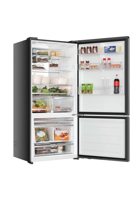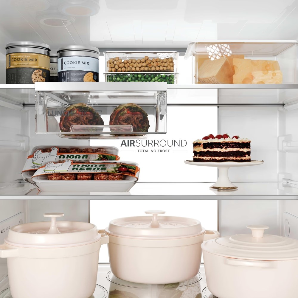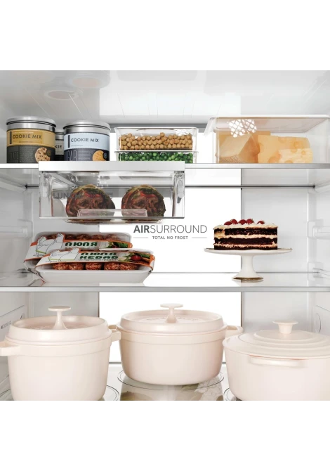 Με την τεχνολογία Fresher Tech της Haier, Air Surround, ο αέρας ρέει γύρω από το ψυγείο με πιο ήπιο και απαλό τρόπο από ειδικούς πλευρικούς αεραγωγούς κατανέμοντας ομοιογενώς τον κρύο αέρα που αγκαλιάζει τα τρόφιμα σε ολόκληρο τον θάλαμο του ψυγείου, χωρίς να βάλλει απευθείας τρόφιμα και να τα αφυδατώνει, όπως συμβαίνει στα συμβατικά ψυγεία. Γι' αυτό το Haier Air Surround διατηρεί τη γεύση και τη φρεσκάδα του φαγητού έως και 99%* μετά από 7 ημέρες, όπως την πρώτη μέρα που τα αγοράσατε. *Δοκιμή που εκδόθηκε από ανεξάρτητο εξωτερικό τεχνικό εργαστήριο, συγκρίνοντας ένα ψυγείο με τεχνολογία Total No Frost Circle + με ψυγείο τεχνολογίας άμεσης ροής.