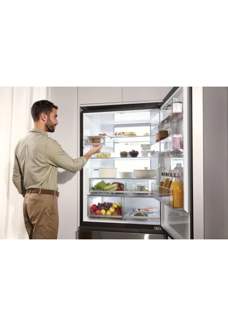 Το ειδικό συρτάρι Humidity Zone διατηρεί τα φρούτα και τα λαχανικά σας πιο φρέσκα, για διπλάσιο χρόνο. Χάρη στην πρωτοποριακή τεχνολογία Humidity Control System, μια μεμβράνη φυτικών ινών διατηρεί την υγρασία στο 90%. Ως εκ τούτου, αποτρέπεται ο σχηματισμός συμπύκνωσης υγρασίας στο εσωτερικό του συρταριού, ενώ διατηρούνται ανέπαφα και αναλλοίωτα όλα τα θρεπτικά συστατικά των τροφίμων για μεγάλο χρονικό διάστημα.