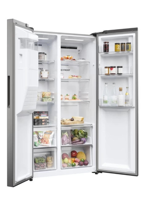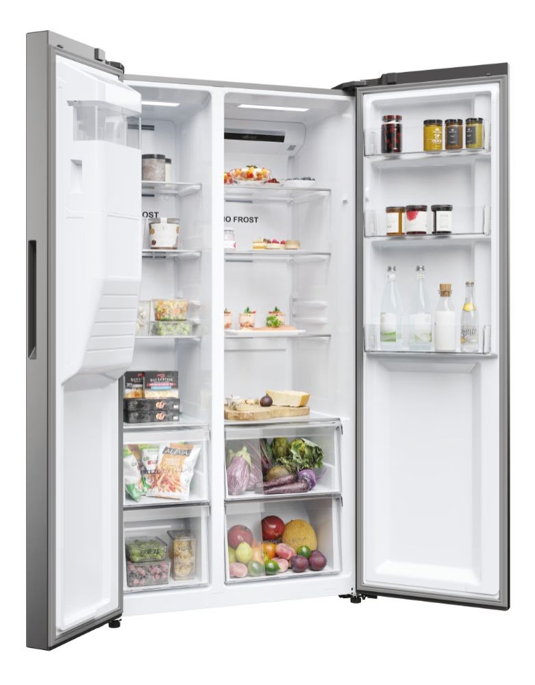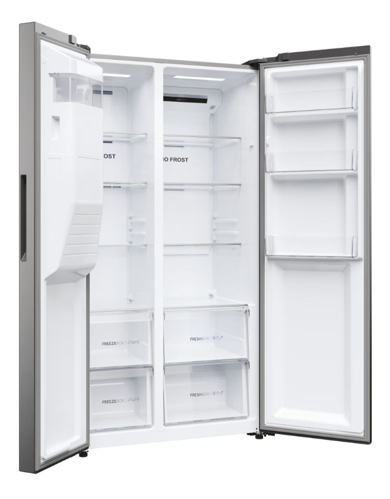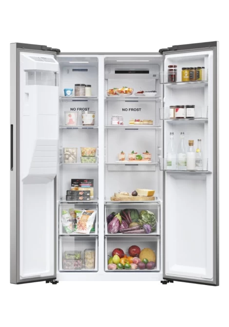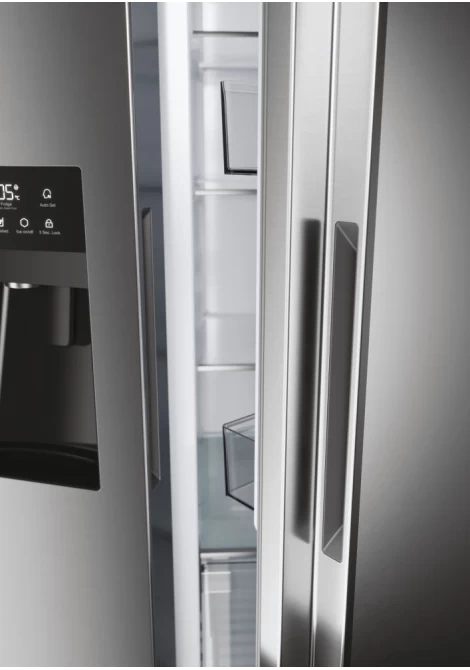 Το ψυγείο ντουλάπα Side By Side 90 της Haier προσφέρει μεγάλη καθαρή χωρητικότητα ενώ παρέχει εύκολη πρόσβαση τόσο στον χώρο της συντήρησης όσο και της κατάψυξης. Διαθέτει κομψό minimal σχεδιασμό με επίπεδες πόρτες και κρυφή χειρολαβή ώστε να ταιριάζει σε οποιοδήποτε στυλ κουζίνας. Η λειτουργική φωτιζόμενη εξωτερική οθόνη σε συνδυασμό με την εξωτερική παροχή κρύου νερού ή πάγου (σε κύβους ή θρυμματισμένος) σε συνδυασμό με το μοναδικό φινίρισμα Platinum Inox προσδίδει ύφος πολυτέλειας στην κουζίνα σας. Η λειτουργία πολλαπλής κυκλοφορίας αέρα Multi Air Flow εξασφαλίζει τις ιδανικές συνθήκες συντήρησης των τροφίμων σας.