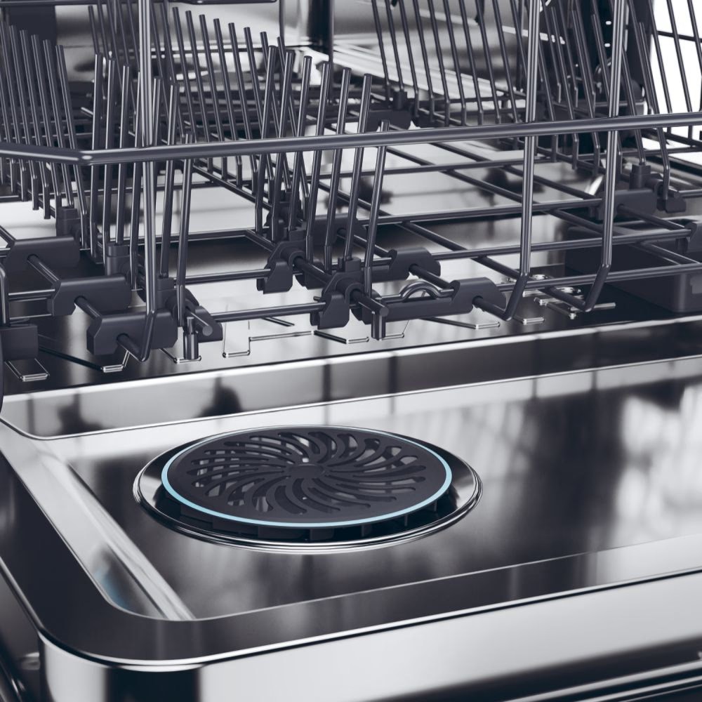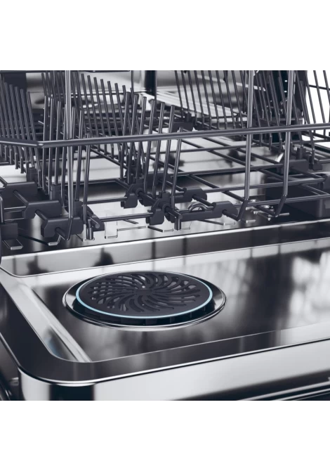 Στο τέλος του κύκλου, θα έχετε ένα αποτέλεσμα "χωρίς σταγόνες". Χάρη στην καινοτόμο και πατενταρισμένη τεχνολογία διπλού ανεμιστήρα, αυτό το πλυντήριο πιάτων είναι ικανό να μετατρέπει τον αέρα του περιβάλλοντος σε ζεστό αέρα που κυκλοφορεί στην καμπίνα, εξασφαλίζοντας 100% τέλειο στέγνωμα.