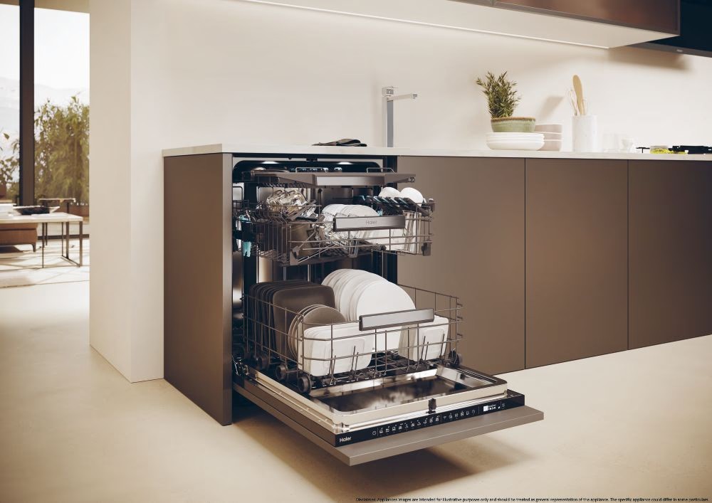 Το νέο πλυντήριο πιάτων της Haier έχει σχεδιαστεί για να ταιριάζει απόλυτα σε οποιοδήποτε ύψος επίπλων, ικανοποιώντας κάθε ανάγκη για διακριτικό και minimal design στην κουζίνα. Χάρη στη νέα λύση του συρόμενου μεντεσέ, η εγκατάσταση του προϊόντος είναι πολύ εύκολη και επιτρέπει το άνοιγμα της πόρτας ακόμη και με υψηλότερα έπιπλα κουζίνας.