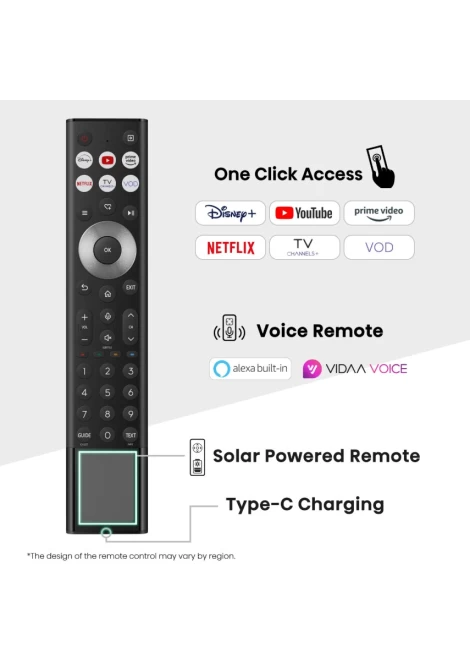 Έλεγχος με σεβασμό στο περιβάλλον Ηλιακό Τηλεχειριστήριο Το Solar Remote της Hisense φορτίζεται μέσω φυσικού φωτός ή USB-C, μειώνοντας τη χρήση μπαταριών και τα ηλεκτρονικά απόβλητα. Μια έξυπνη λύση που συνδυάζει άνεση, εξοικονόμηση και περιβαλλοντική συνείδηση χωρίς κανένα συμβιβασμό στην εμπειρία σο |