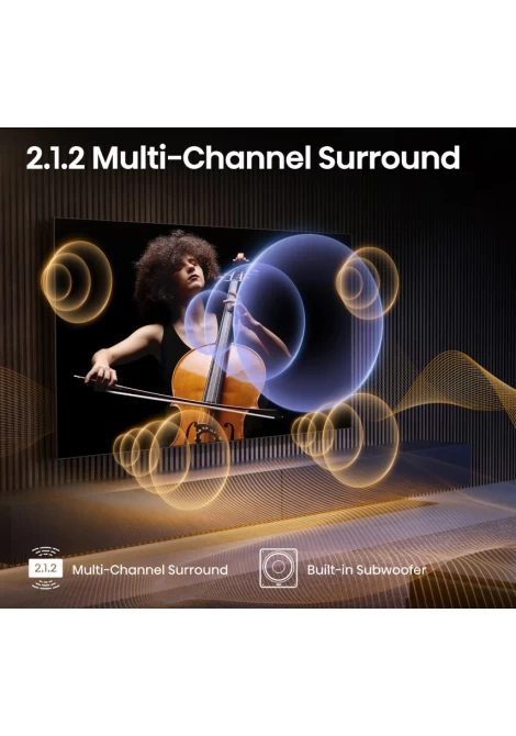 Εκλεπτυσμένος Surround ήχος 2.1.2 Multi-Channel Surround Άκου περισσότερα απ’ ό,τι περιμένεις με πολυκάναλο ήχο 2.1.2 Surround που γεμίζει τον χώρο με βάθος, καθαρότητα και μέγεθος. Χωρίς επιπλέον εξοπλισμό, ανακάλυψε λεπτομέρειες που μέχρι τώρα δεν μπορούσες να τις αντιληφθείς |