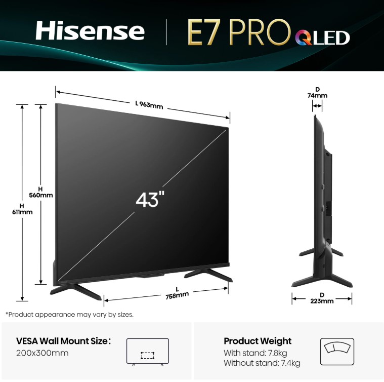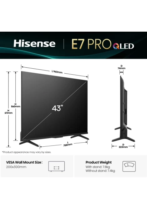 Hisense 43E7Q PRO 43'' QLED 4K UHD Smart TV Τηλεόραση
