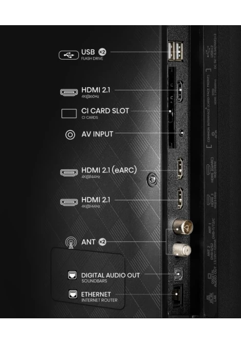 Υποστήριξη για τις πιο σύγχρονες κονσόλες, με ταχύτερη μεταφορά δεδομένων και ελάχιστο lag. Πρόσθεσε όλες τις εξωτερικές σου συσκευές με πλήρη συνδεσιμότητα: HDMI 2.1, USB 3.0, AirPlay, Bluetooth και Share to TV. Ενσύρματα ή ασύρματα, εσύ επιλέγεις