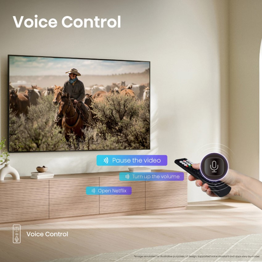 Δοκίμασε το Hisense Voice Remote και πήγαινε τον έλεγχο της τηλεόρασης στο επόμενο επίπεδο. Με το πάτημα ενός κουμπιού, ενεργοποιείς φωνητικές εντολές για να βρίσκεις σειρές, να ρυθμίζεις την ένταση ή να μιλάς με τον ψηφιακό βοηθό σου εύκολα και χωρίς κόπο