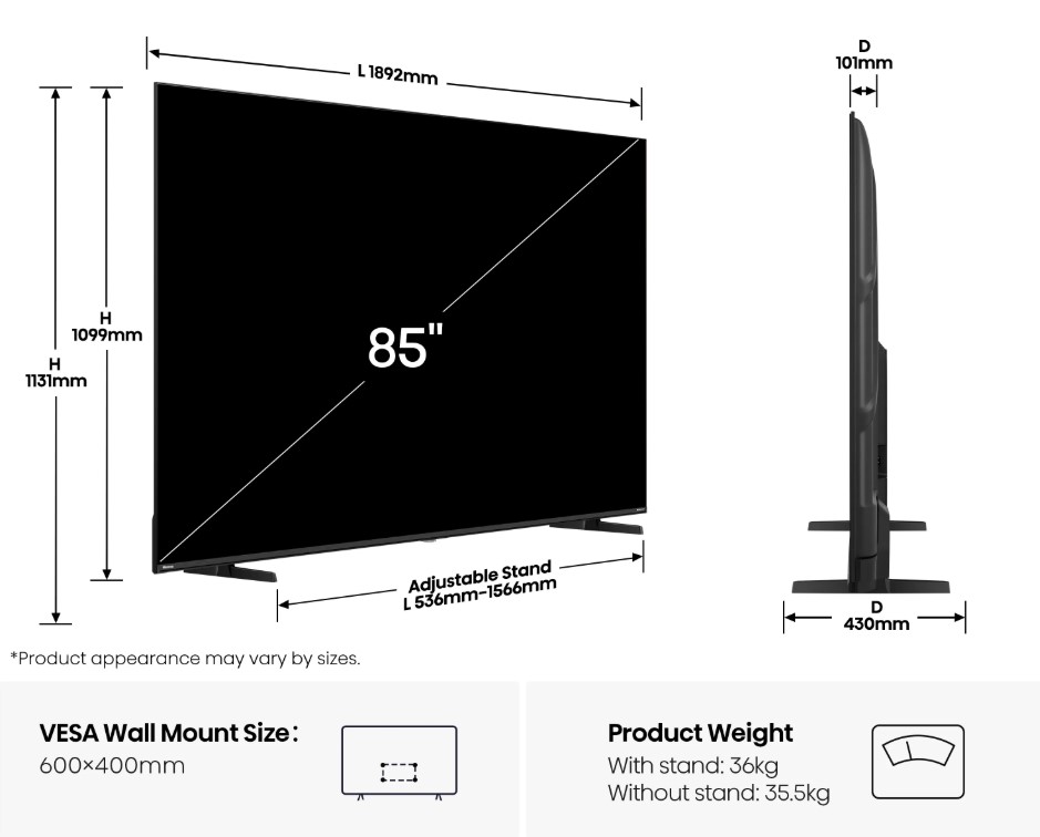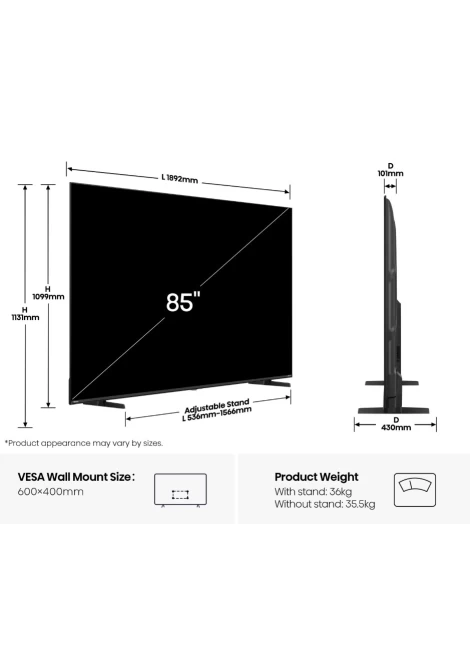 Διαγώνιος οθόνης (inch) 85 inch,