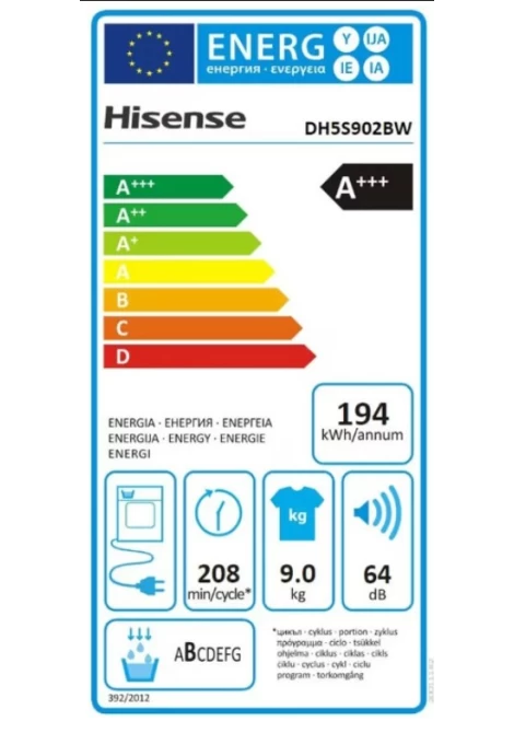 Hisense DH5S902BW Στεγνωτήριο ρούχων 9kg