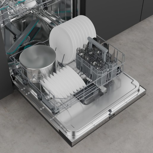 Χάρη στα ευέλικτα καλάθια και τις αναδιπλούμενες σχάρες, μπορείτε να χωρέσετε έως και 14 σερβίτσια σε έναν μόνο κύκλο πλύσης.