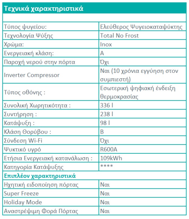 Συνολική χωρητικότητα στα 336 lt,