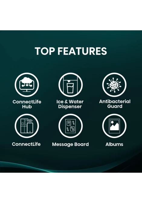 Διαχειριστείτε όλες τις συνδεδεμένες οικιακές σας συσκευές μέσω της ενιαίας πλατφόρμας ConnectLife στο ψυγείο σας. Παρακολουθήστε την κατάσταση των συσκευών σας στην υψηλής ποιότητας μεγάλη οθόνη, εμπλουτίζοντας τον έξυπνο τρόπο ζωής σας.