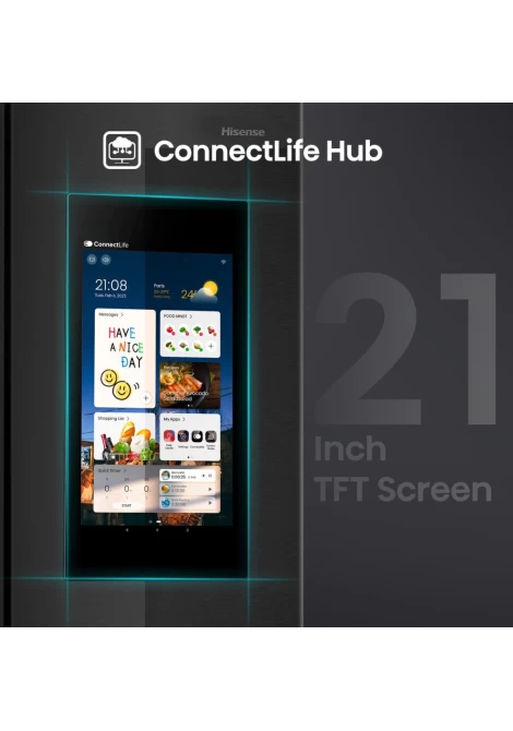 Ψηφιοποιήστε την κουζίνα σας με την 21 ιντσών έξυπνη οθόνη ενσωματωμένη στο ψυγείο Hisense. Αυτή η συσκευή δεν είναι απλώς ένα ψυγείο αποτελεί τον ακρογωνιαίο λίθο μιας πλήρους ψηφιακής αναβάθμισης της κουζίνας σας. Συνδέστε το απρόσκοπτα με το κινητό σας ή άλλες έξυπνες συσκευές για μια ολοκληρωμένη εμπειρία έξυπνου σπιτιού. Επιπλέον, ο μοντέρνος σχεδιασμός της αναβαθμίζει αισθητικά ολόκληρο τον χώρο της κουζίνας σας.