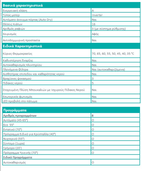 Χωρητικότητα: 14 σερβίτσια