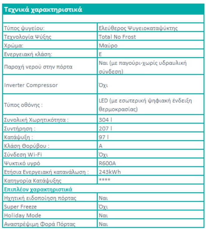 Συνολική χωρητικότητα στα 304 lt,