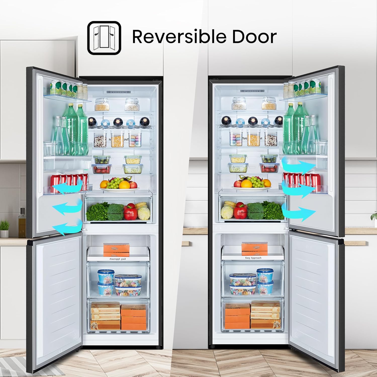 Το ψυγείο έχει σχεδιαστεί ώστε να είναι στο ίδιο βάθος με τον πάγκο της κουζίνας, προσφέροντας ενιαία αισθητική και εξοικονόμηση χώρου