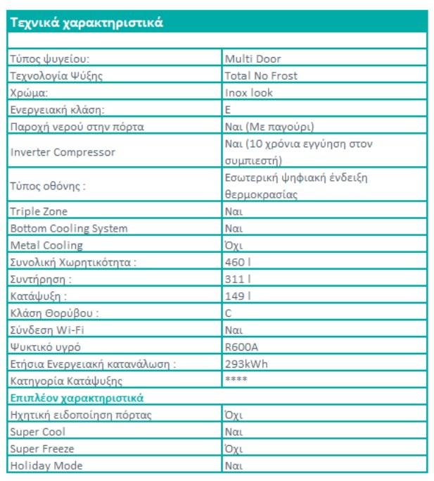 Ωφέλιμη χωρητικότητα 460 λίτρα