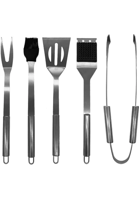 Περιλαμβάνει 5 τμχ: Πιρούνα, Σπάτουλα, Λαβίδα, Βούρτσα 2 σε 1, Πινέλο Σιλικόνη