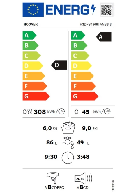Hoover H3DPS4966TAMB6-S Πλυντήριο Στεγνωτήριο
