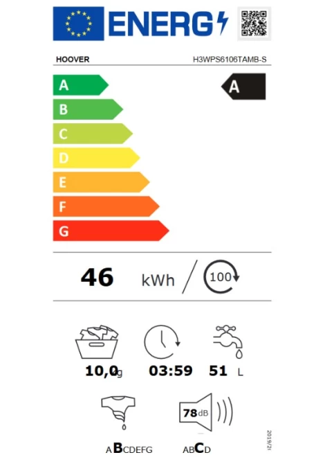 Hoover H3WPS6106TAMB-S Πλυντήριο Ρούχων
