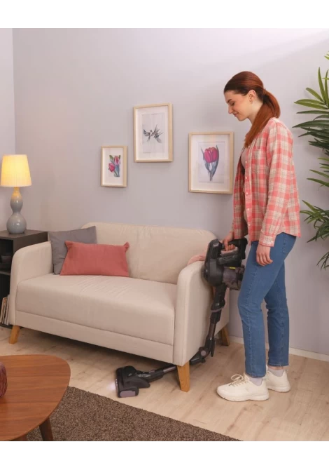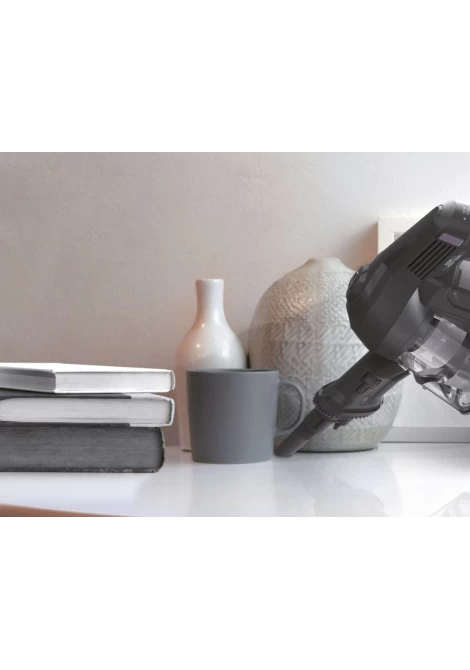 Θέλετε να απαντήσετε στο τηλέφωνο ενώ σκουπίζετε; Έγινε! Το HF1 μπορεί να παραμείνει προσωρινά σε κατακόρυφη θέση, για να σας επιτρέψει να διαχειρίζεστε τις γρήγορες εργασίες με άνεση. Όταν το stick χρησιμοποιείται και το παρακολουθείτε, μπορείτε να το σταθμεύσετε προσωρινά στην κατακόρυφη θέση του σε σκληρά δάπεδα. Ωστόσο, εάν αφεθεί χωρίς επίβλεψη, πρέπει να αποθηκευτεί στην επιτοίχια βάση του.