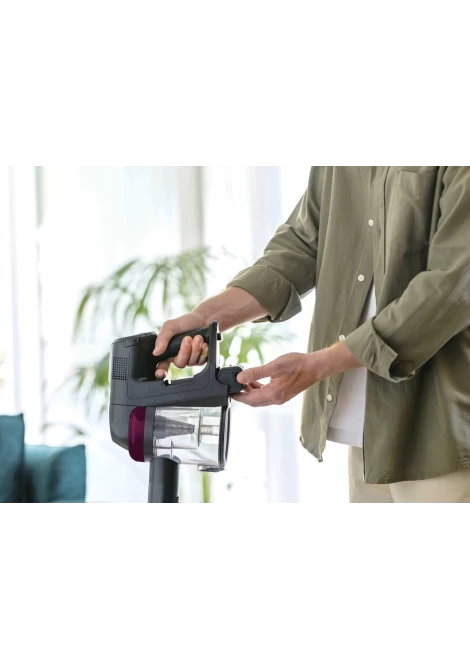 | Έως και 70 λεπτά ασύρματου καθαρισμού Με χρόνο λειτουργίας έως και 70 λεπτά*, έχετε άφθονο χρόνο για να καθαρίσετε το σπίτι σας. Η αφαιρούμενη μπαταρία μπορεί να φορτιστεί είτε εντός είτε εκτός του προϊόντος, ανάλογα με τις ανάγκες σας. *Ο χρόνος λειτουργίας μετριέται σε λειτουργία ECO και σε διαμόρφωση χειρός. |