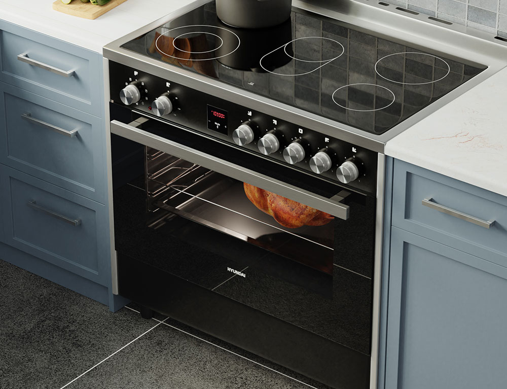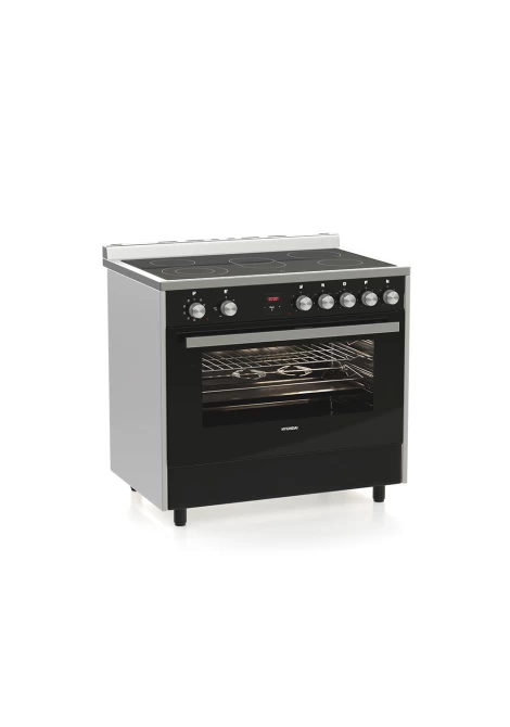 Η κουζίνα Hyundai HCV20-99L90V/BXG έρχεται με προδιαγραφές επαγγελματικής κουζίνας με πολυλειτουργικό φούρνο, κεραμικές εστίες με 7 ζώνες, τεράστια χωρητικότητα φούρνου 105 λίτρα, ενεργειακή κλάση Α και 9 λειτουργίες ψησίματος.