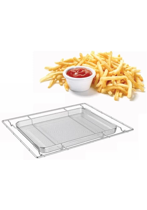 Διαθέτει ένα βαθύ ταψί γενικής χρήσης 8cm, ένα ρηχό ταψί, ταψι για χρήση air fryer, μια σούβλα καθώς και μια στάνταρ συρμάτινη σχάρα