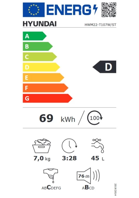 Hyundai HWM22-T107W/ST Πλυντήριο Ρούχων