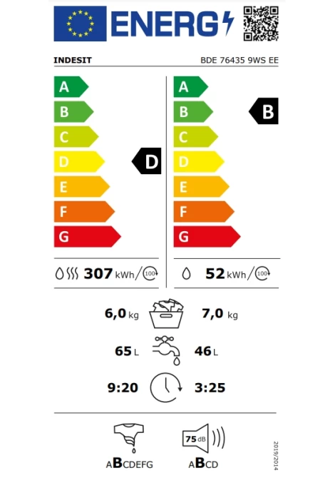 Ενεργειακή Κλάση Στέγνωμα / Πλύση: D / B