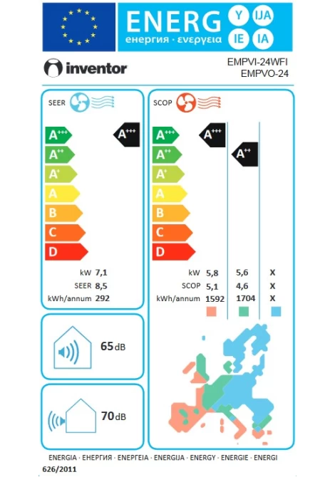 Τα κλιματιστικά Inventor είναι πιστοποιημένα από τον οργανισμό EUROVENT, για την ακρίβεια της υψηλής απόδοσής τους. Η πιστοποίηση αυτή εξασφαλίζει την ακρίβεια των τεχνικών χαρακτηριστικών όπως η ενεργειακή κλάση, η κατανάλωση ενέργειας και η στάθμη θορύβου.