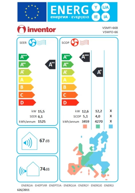 Τα κλιματιστικά Inventor είναι πιστοποιημένα από τον οργανισμό EUROVENT, για την ακρίβεια της υψηλής απόδοσής τους. Η πιστοποίηση αυτή εξασφαλίζει την ακρίβεια των τεχνικών χαρακτηριστικών όπως η ενεργειακή κλάση, η κατανάλωση ενέργειας και η στάθμη θορύβου.