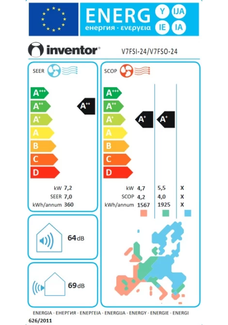 Τα κλιματιστικά Inventor είναι πιστοποιημένα από τον οργανισμό EUROVENT, για την ακρίβεια της υψηλής απόδοσής τους. Η πιστοποίηση αυτή εξασφαλίζει την ακρίβεια των τεχνικών χαρακτηριστικών όπως η ενεργειακή κλάση, η κατανάλωση ενέργειας και η στάθμη θορύβου.