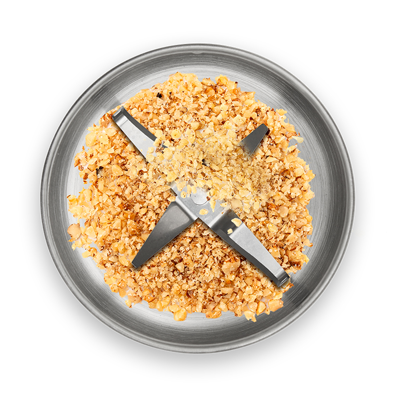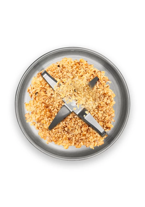 Περιλαμβάνει ανοξείδωτο δοχείο άλεσης για ξηρούς καρπούς, τυριά, σπόρους και μπαχαρικά (4 λεπίδες)