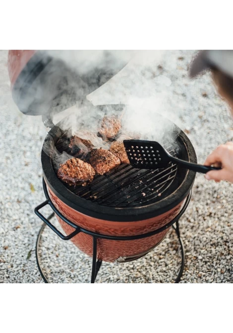 Η αναδιπλούμενη ανοξείδωτη σχάρα σας επιτρέπει να προσθέτετε κάρβουνα κατά τη διάρκεια του ψησίματος χωρίς να διακόπτετε την διαδικασία. Το παχύ κεραμικό τοίχωμα διασφαλίζει εξαιρετική θερμική απόδοση αφού διατηρεί τη θερμοκρασία σταθερή και εγκλωβίζει μέσα τον καπνό και την υγρασία για πλούσιο και ζουμερό ψήσιμο.