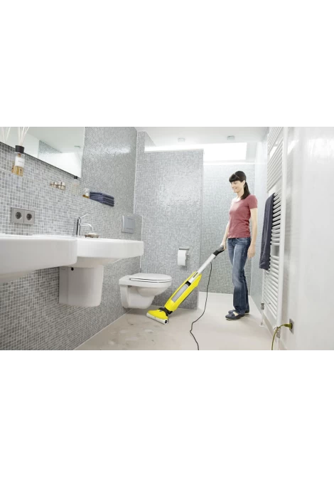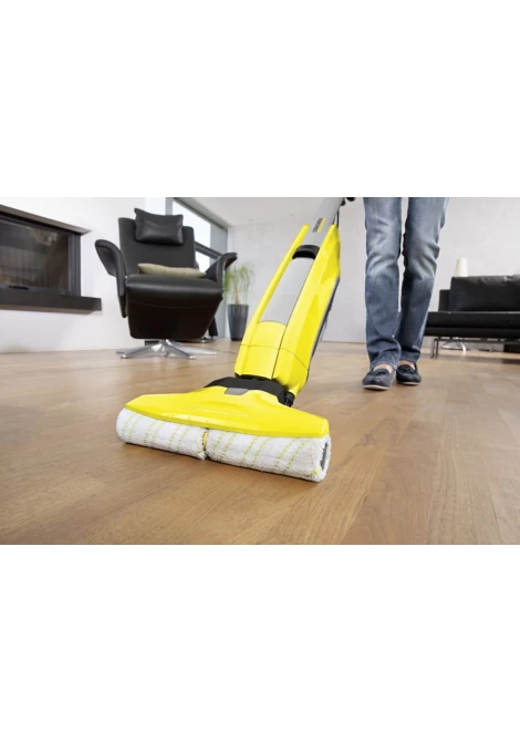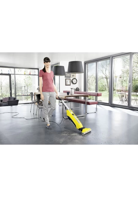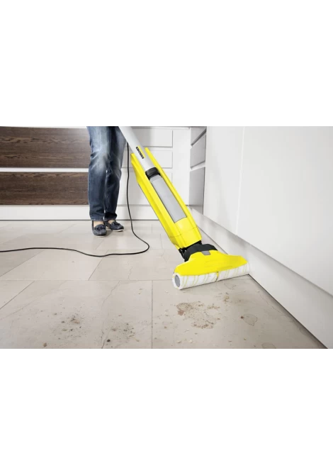 - Καθαρισμός δαπέδου χωρίς τη χρήση κουβά και χωρίς τρίψιμο; Κανένα πρόβλημα για το FC 5 της Kärcher: Αφαιρεί τους ρύπους, τα ψίχουλα και τις τρίχες από κατοικίδια, ενώ παράλληλα σφουγγαρίζει το δάπεδο – μέχρι την άκρη. Οι περιστρεφόμενοι κύλινδροι διαβρέχονται συνεχώς με καθαρό νερό, ενώ οι συλλεγόμενοι ρύποι μεταφέρονται στη δεξαμενή του ακάθαρτου νερού. Καθαρίζει όλα τα είδη δαπέδου (πλακάκια, παρκέ, laminate, PVC και βινύλιο) 20% καλύτερα σε σχέση με τις συμβατικές σφουγγαρίστρες*, ενώ μπορείτε να περπατήσετε και πάλι επάνω τους περίπου δύο λεπτά μετά την εφαρμογή. Άλλο ένα πρακτικό χαρακτηριστικό: Οι κύλινδροι πλένονται στο πλυντήριο στους 60 °C. Η Kärcher προσφέρει μια ευρεία γκάμα προϊόντων καθαρισμού και διαφορετικών κυλίνδρων για ειδικά δάπεδα (π.χ. στεγανοποιημένα ξύλινα δάπεδα, λαδωμένα/κερωμένα δάπεδα, πέτρινα δάπεδα κ.λπ.). Μετά τη χρήση, το FC 5 μπορεί να καθαριστεί σχολαστικά χρησιμοποιώντας τη λειτουργία αυτοκαθαρισμού.