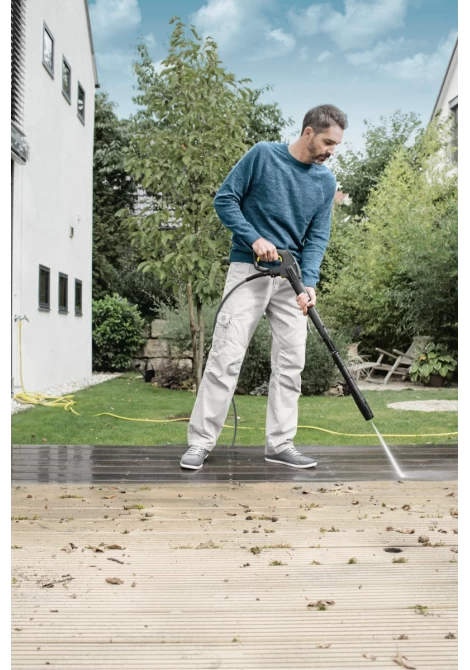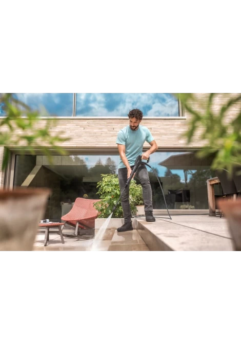 Με το πλυστικό μηχάνημα υψηλής πίεσης K 7 Power Flex, κάθε επιφάνεια μπορεί να καθαριστεί με τη σωστή πίεση. Ο σύμβουλος εφαρμογών που είναι ενσωματωμένος στην εφαρμογή Kärcher Home & Garden βοηθά τον χρήστη να βρει τη σωστή πίεση παρέχοντας πρακτικές συμβουλές για κάθε περίπτωση και εργασία καθαρισμού - για τέλεια αποτελέσματα καθαρισμού. Το K 7 Power Flex είναι εξοπλισμένο με υδρόψυκτο κινητήρα και έχει σχεδιαστεί για συχνό καθαρισμό, καθώς και για την αντιμετώπιση βαριάς βρωμιάς που συχνά συσσωρεύεται σε μονοπάτια, πισίνες, ποδήλατα ή μεγάλα αυτοκίνητα, για παράδειγμα. Η εκτεταμένη γκάμα εξοπλισμού περιλαμβάνει ένα πιστόλι με πρακτικό προσαρμογέα Quick Connect μέσω ενός εύκαμπτου σωλήνα υψηλής πίεσης PremiumFlex, ένα αξιόπιστο φίλτρο νερού που προστατεύει την αντλία, μια κάνη ψεκασμού Vario Power (VPS) και ένα τούρμπο μπεκ με περιστρεφόμενο σημειακό πίδακα. Η ρύθμιση πίεσης στο VPS μπορεί να ρυθμιστεί με μια απλή περιστροφική κίνηση και το τούρμπο μπεκ κάνει σύντομη δουλειά ακόμη και με την πιο επίμονη βρωμιά. Άλλες λεπτομέρειες εξοπλισμού περιλαμβάνουν το σύστημα απορρυπαντικού Plug 'n' Clean, την τηλεσκοπική λαβή αλουμινίου και τη θέση στάθμευσης για εύκολα προσβάσιμα αξεσουάρ.