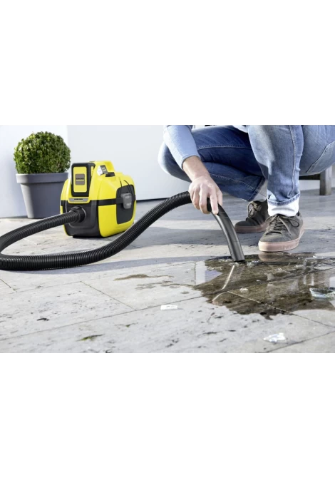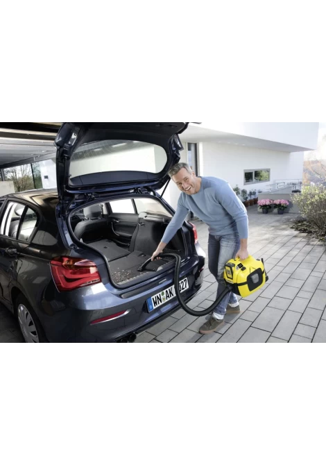 - Χάρη στη λειτουργία της μπαταρίας, η μπαταριοκίνητη σκούπα αναρρόφησης πολλαπλών εφαρμογών WD 1 Compact παρέχει μέγιστη ελευθερία κινήσεων, μπορεί να χρησιμοποιηθεί χωρίς την ανάγκη σύνδεσης σε κεντρική παροχή ηλεκτρικού ρεύματος και είναι εξαιρετικά ελαφριά και συμπαγής. Ανάλογα με την μπαταρία 18 V Battery Power που χρησιμοποιείται (στη συσκευασία δεν περιλαμβάνεται η μπαταρία), η διάρκεια λειτουργίας της σκούπας αναρρόφησης πολλαπλών εφαρμογών κυμαίνεται από 10 έως 20 λεπτά. Η σκούπα WD 1 Compact Battery διαθέτει επίσης ένα ανθεκτικό πλαστικό κάδο χωρητικότητας 7 λίτρων, καθώς και φίλτρο τύπου φυσιγγίου για εύκολη αναρρόφηση στερεών και υγρών ρύπων, χωρίς να απαιτείται αντικατάσταση του φίλτρου. Επιπλέον χαρακτηριστικά της: ο εύκαμπτος σωλήνας (λάστιχο) αναρρόφησης με βελτιστοποιημένη ροή και ειδικά εξαρτήματα, όπως τα ακροφύσια για εσοχές και ταπετσαρίες, συμβάλλουν σε μεγάλο βαθμό στη βέλτιστη συλλογή των ρύπων και διασφαλίζουν άψογη καθαριότητα κατά τον καθαρισμό του εσωτερικού αυτοκινήτων – και όχι μόνο. Επίσης, χάρη στη συμβατότητά της με την πλατφόρμα μπαταριών 18 V, μπορούν να χρησιμοποιηθούν και μπαταρίες από άλλες συσκευές της πλατφόρμας μπαταρίας 18 V Battery Power στη σκούπα WD 1 Compact Battery.