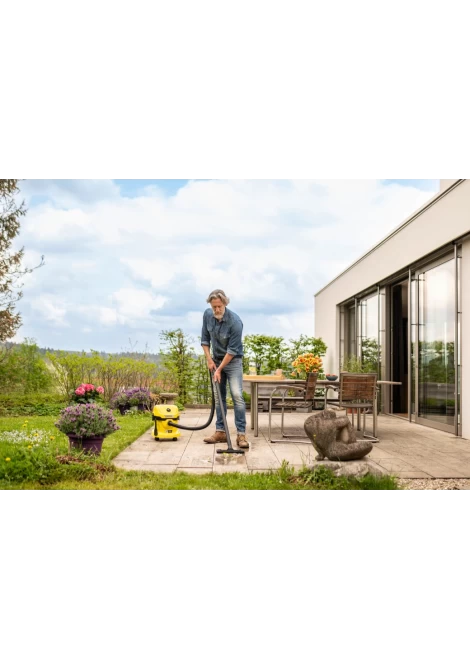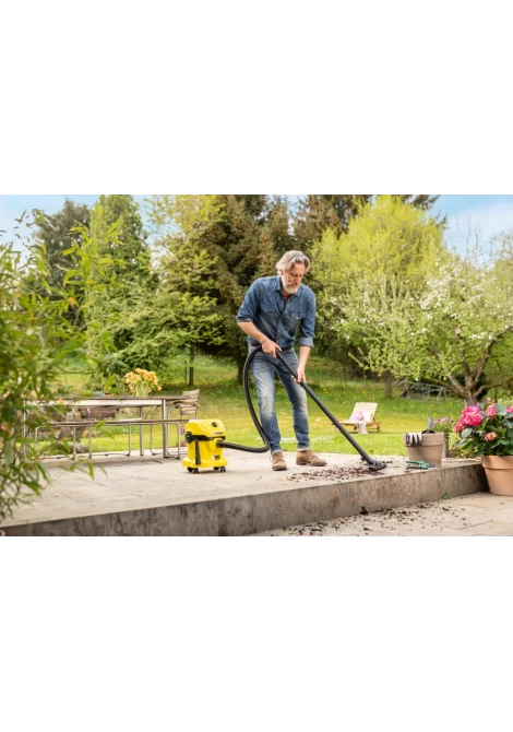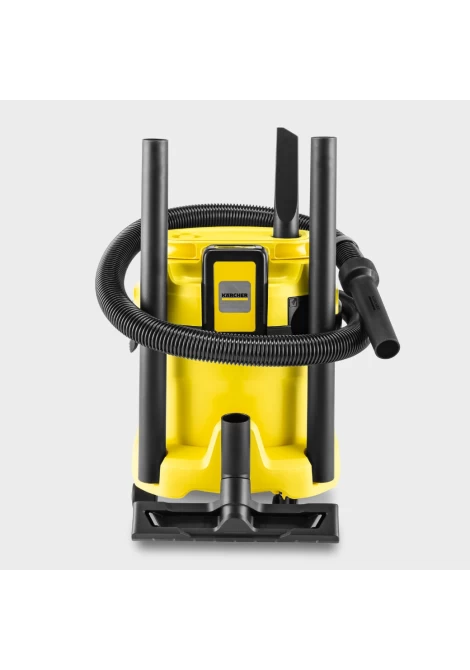 Χωρίς καλώδιο. Χωρίς όρια: η μπαταριοκίνητη σκούπα υγρής και ξηρής αναρρόφησης WD 2-18 που λειτουργεί με μπαταρία προσφέρει μέγιστη ευελιξία, συμπαγή σχεδιασμό και ελευθερία κινήσεων. Η συσκευή συνδυάζει τέλεια έναν εύκαμπτο σωλήνα αναρρόφησης μήκους 1,8 μέτρων και το ακροφύσιο δαπέδου με κλιπ και μπορεί να αφαιρέσει υγρούς, λεπτόκοκκους ή χονδροειδείς ρύπους σε ελάχιστο χρόνο. Η συσκευή είναι επίσης εξοπλισμένη με ένα στιβαρό πλαστικό δοχείο 12 λίτρων καθώς και μια σακούλα φίλτρου fleece. Η αποθήκευση του σωλήνα αναρρόφησης εξοικονομεί χώρο. απλά κρέμασέ το με ασφάλεια στην κεφαλή της συσκευής. Άλλα χαρακτηριστικά περιλαμβάνουν την πρακτική λειτουργία φυσητήρα για χώρους όπου δεν είναι εφικτό το σκούπισμα, το ράφι αποθήκευσης εργαλείων και μικροαντικειμένων, ο περιστροφικός διακόπτης για εύκολη ενεργοποίηση και απενεργοποίηση της συσκευής, η εργονομικά διαμορφωμένη λαβή μεταφοράς καθώς και το "Pull & Push" σύστημα κλειδώματος που επιτρέπει στο δοχείο να ανοίγει και να κλείνει εύκολα. Η θέση στάθμευσης που παρέχεται στον προφυλακτήρα επιτρέπει στους σωλήνες και το ακροφύσιο δαπέδου να αποθηκεύονται γρήγορα και άνετα όταν κάνεις ένα μικρό διάλειμμα από την εργασία. Το εύρος παροχής περιλαμβάνει την μπαταρία 18 V/2,5 Ah Kärcher Battery Power και έναν φορτιστή μπαταρίας.