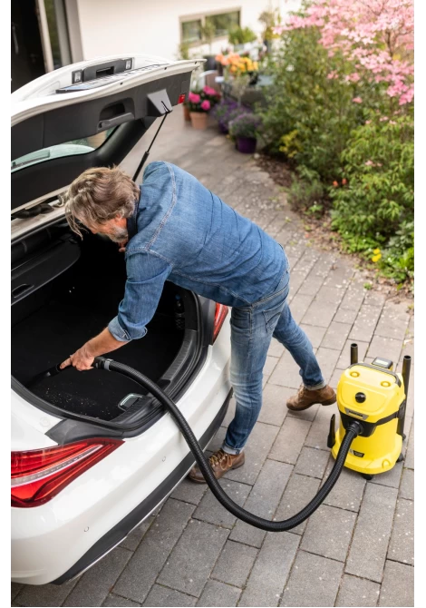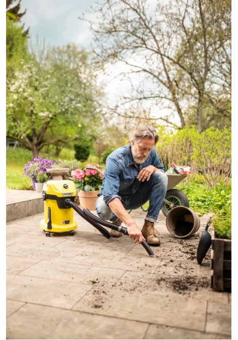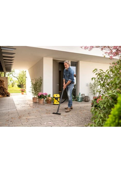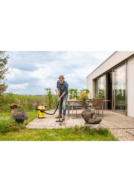 Σκούπισμα χωρίς όρια: Η μπαταριοκίνητη σκούπα υγρής και ξηρής αναρρόφησης WD 3-18 με μπαταρία 18 V προσφέρει μέγιστη ευελιξία, συμπαγή σχεδιασμό και ελευθερία κινήσεων. Η συσκευή συνδυάζει τέλεια έναν εύκαμπτο σωλήνα αναρρόφησης μήκους 2 μέτρων και το ακροφύσιο δαπέδου με κλιπ και μπορεί να αφαιρέσει υγρούς, λεπτόκοκκους ή χονδροειδείς ρύπους σε ελάχιστο χρόνο. Η συσκευή είναι επίσης εξοπλισμένη με ένα στιβαρό πλαστικό δοχείο 17 λίτρων, φίλτρο φυσιγγίου ενός εξαρτήματος καθώς και μια σακούλα φίλτρου fleece. Η αποθήκευση του σωλήνα αναρρόφησης εξοικονομεί χώρο. Απλά κρέμασέ το με ασφάλεια στην κεφαλή της συσκευής. Άλλα χαρακτηριστικά περιλαμβάνουν την πρακτική λειτουργία φυσητήρα για χώρους όπου δεν είναι εφικτό το σκούπισμα, το ράφι αποθήκευσης εργαλείων και μικροαντικειμένων, ο περιστροφικός διακόπτης για εύκολη ενεργοποίηση και απενεργοποίηση της συσκευής, η εργονομικά διαμορφωμένη λαβή μεταφοράς καθώς και το "Pull & Push" σύστημα κλειδώματος που επιτρέπει στο δοχείο να ανοίγει και να κλείνει εύκολα. Η θέση στάθμευσης που παρέχεται στον προφυλακτήρα επιτρέπει στους σωλήνες και το ακροφύσιο δαπέδου να αποθηκεύονται γρήγορα και άνετα όταν κάνεις ένα μικρό διάλειμμα από την εργασία. Το εύρος παροχής περιλαμβάνει επίσης την μπαταρία 18 V/5,0 Ah Kärcher Battery Power και έναν φορτιστή μπαταρίας.