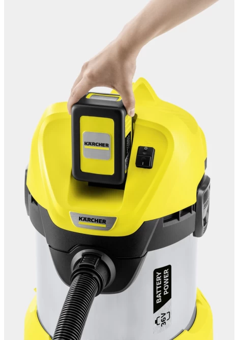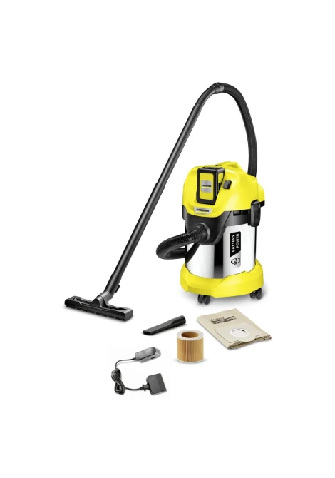 - Τώρα μπορείτε να ξεκινήσετε το καθάρισμα αμέσως, καθώς το κιτ WD 3 Battery Premium περιλαμβάνει μπαταρία με διάρκεια λειτουργίας 15 λεπτών. Η κατάσταση της μπαταρίας προβάλλεται στην οθόνη LCD της μπαταρίας καθ’ όλη τη διάρκεια της εργασίας. Η έκδοση Premium της ισχυρής σκούπας πολλαπλών εφαρμογών με μπαταρία διαθέτει στιβαρό και ανθεκτικό κάδο από ανοξείδωτο χάλυβα. Συνδυάζει την πλήρη λειτουργικότητα μιας σκούπας πολλαπλών εφαρμογών χωρίς να χρειάζεται να είναι συνδεδεμένη σε πρίζα. Ο εύκαμπτος σωλήνας αναρρόφησης βελτιστοποιημένης ροής και τα ακροφύσια δαπέδου διπλού ενθέματος που κουμπώνουν στη θέση τους μέσω ενός έξυπνου συστήματος κλιπ εξασφαλίζουν καλύτερη απορρόφηση των ρύπων και εγγυώνται τέλεια αποτελέσματα καθαρισμού. Χάρη στο φίλτρο τύπου φυσιγγίου, η αναρρόφηση στερεών και υγρών ρύπων μετατρέπεται σε εύκολη υπόθεση, καθώς δεν απαιτείται αλλαγή του φίλτρου. Επίσης, διαθέτει τα ακόλουθα: λειτουργία φυσητήρα, αποσπώμενη λαβή για απευθείας σύνδεση των εξαρτημάτων, θέση στάθμευσης για τον σωλήνα αναρρόφησης και το ακροφύσιο δαπέδου, σύστημα κλειδώματος έλξης - ώθησης (Pull & Push), εργονομική λαβή μεταφοράς και εξαιρετικά πρακτικές λύσεις αποθήκευσης των εξαρτημάτων. Η σκούπα WD 3 Battery Premium Set ανήκει στην πλατφόρμα μπαταριών 36 V, δηλαδή η μπαταρία της μπορεί να χρησιμοποιηθεί σε άλλες συσκευές της ίδιας πλατφόρμας, για μεγαλύτερη ευελιξία.