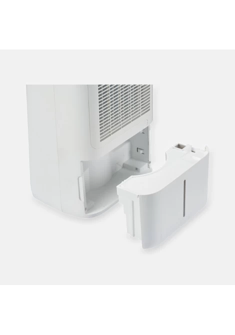 Το νερό συλλέγεται στο δοχείο του αφυγραντήρα (4,5L). Για συνεχή αποστράγγιση, συνδέστε σωληνάκι 12 mm (δεν περιλαμβάνεται) στην υποδοχή, με την άλλη άκρη στην αποχέτευση. Εξασφαλίστε κλίση του σωληνάκι προς τα κάτω για ομαλή ροή. Τοποθετήστε τον αφυγραντήρα σε ύψος, όχι στο δάπεδο, και βεβαιωθείτε ότι το σωληνάκι παραμένει ελεύθερο από εμπόδια.