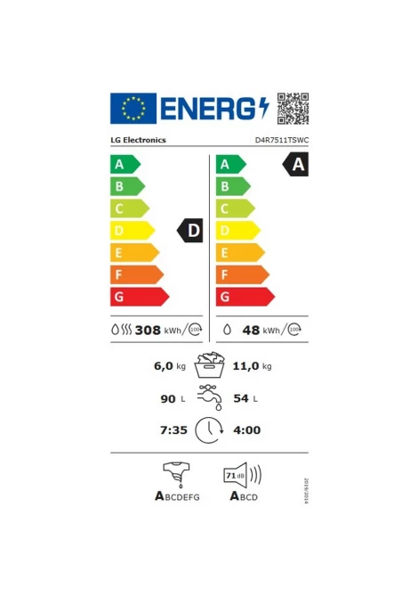 LG D4R7511TSWC Steam Πλυντήριο Στεγνωτήριο 11/6 kg