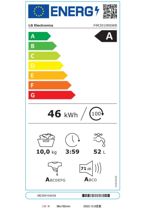 LG F4R3010NSWB Πλυντήριο Ρούχων με Ατμό 10kg