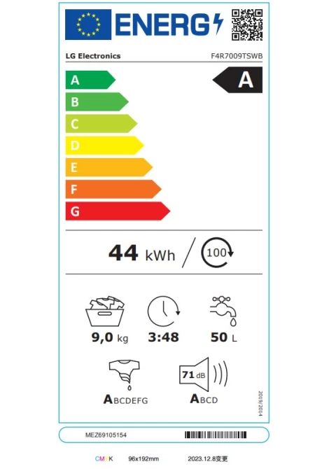 - Κλάση Ενεργειακής Απόδοσης (Πλύση): A