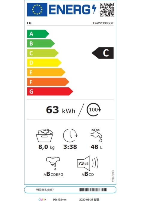 LG F4WV308S3E 8kg Πλυντήριο Ρούχων Ατμού