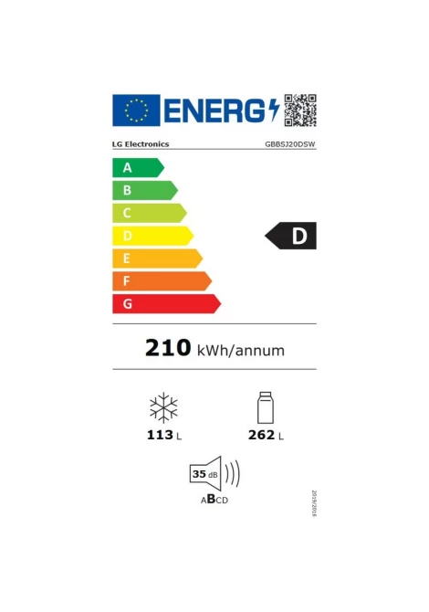 LG GBBSJ20DSW Ψυγειοκαταψύκτης Total No Frost 375lt