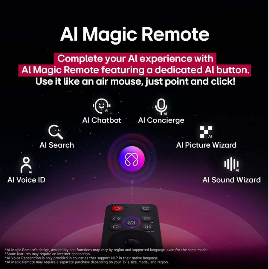 Ελέγχετε την τηλεόρασή σας εύκολα με το AI Magic Remote - δεν απαιτείται επιπλέον συσκευή! Με έναν αισθητήρα κίνησης και τροχό κύλισης, κάντε κλικ, σύρετε και αποθέστε για να το χρησιμοποιήσετε όπως ένα air mouse ή απλώς μιλήστε για φωνητικές εντολές.