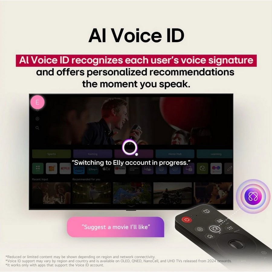 Το LG AI Voice ID αναγνωρίζει τη μοναδική φωνητική υπογραφή κάθε χρήστη και προσφέρει εξατομικευμένες προτάσεις τη στιγμή που μιλάτε.